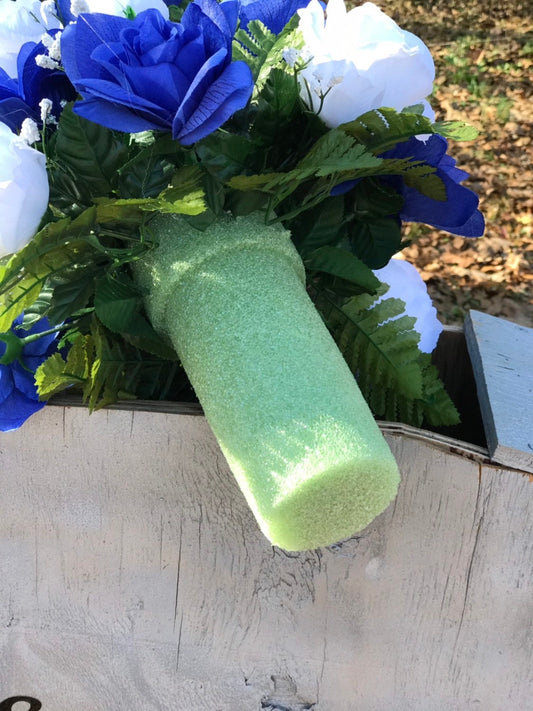 27" Tall Cemetery Vase Flowers Blue yellow Vase Cemetery Flower Vase Cone Flowers for a 3” wide Grave Vase Man Colors Father Son Memorial