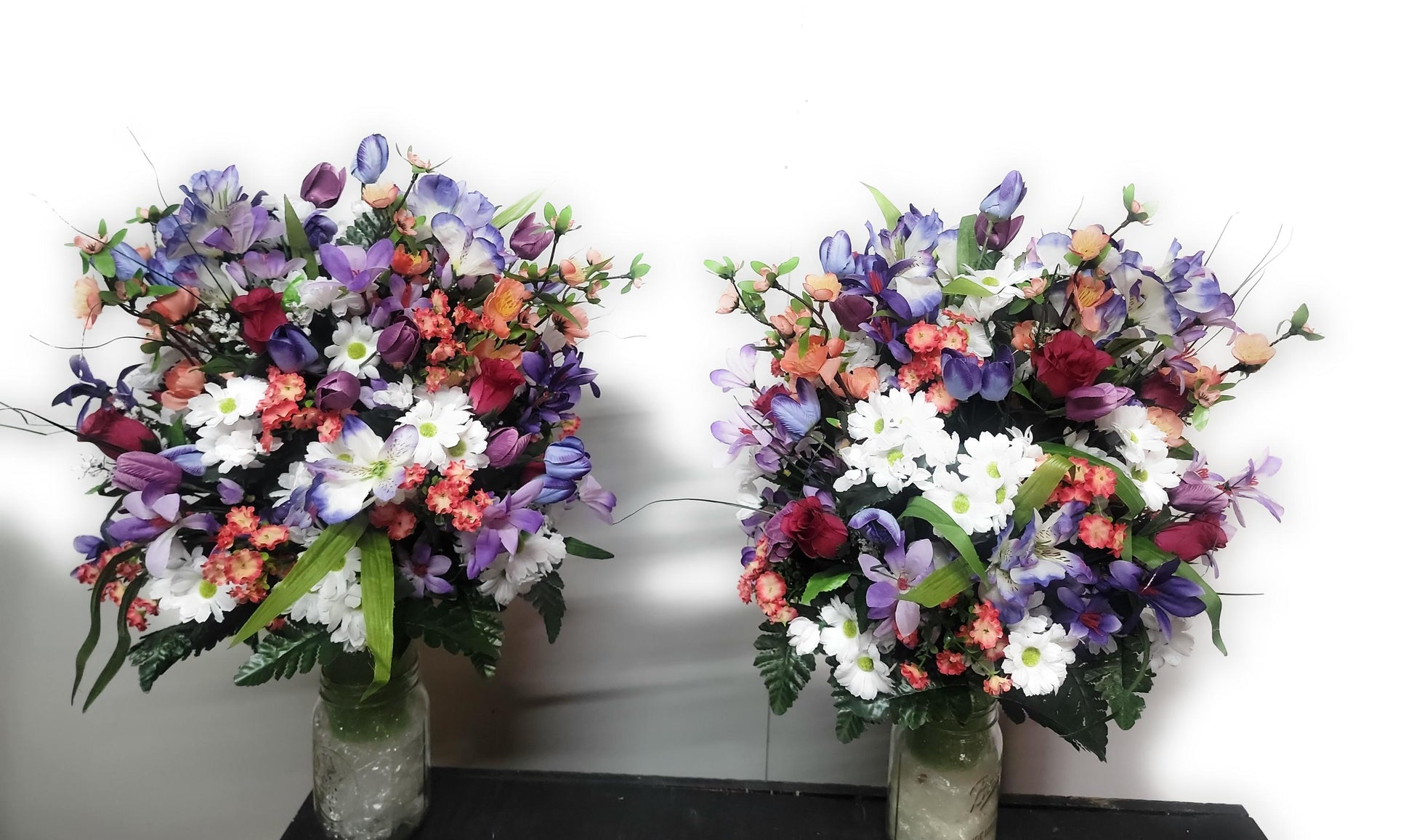 • Flowers are arranged all around on all sides. If you would like a cheaper one-sided arrangement message me for a custom order.